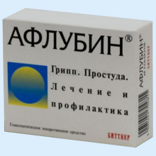 Получить консультацию по данному препарату| Состав и форма выпуска. | Афлубин таблетки подъязычные белого цвета, круглые, плоскоцилиндрические, с фаской и риской, без запаха. 1 таблетка содержит: Gentiana D1 3.6 мг Aconitum D6 37.2 мг Bryonia D6 37.2 мг Ferrum phosphoricum D12 37.2 мг Acidum sarcolacticum D12 37.2 мг вспомогательные выщества: лактозы моногидрат, крахмал картофельный, магния стеарат. |