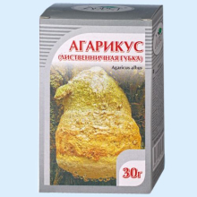 | Способ применения. | 1 чайная ложка измельченного агарикуса на стакан кипятка, настаивать 8-10 часов, процедить, принимать по 1/3 стакана 3 раза в день. |