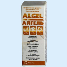 | Фармакологическое действие. | Алгель нормализует выделение жидкости из потовых желез на поверхность кожи. Работа самой потовой железы не нарушается и вырабатываемая жидкость через кровеносные сосуды равномерно перераспределяется к другим областям кожи с менее выраженной склонностью к потоотделению, а также выводится почками. В результате область кожи, обработанная Алгелем, остается сухой. При этом избыточного выделения пота на других участках кожи не происходит. Безопасность Алгеля обусловлена тем, что он не проникает в организм и работает только на поверхности кожи. Это делает его безопасным даже при длительном использовании. Алгель содержит противогрибковый компонент, который снижает риск заражения грибками. Алгель также содержит комплекс компонентов, обладающих смягчающим и дезодорирующим эффектом. |