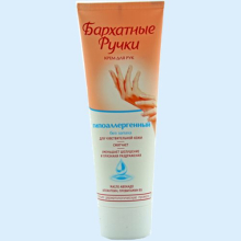 | Фармакологическое действие. | Крем для рук Бархатные Ручки гипоаллергенный уменьшает признаки раздражения и устраняет шелушение. Благодаря своей гипоаллергенной формуле без отдушки идеально подходит даже для ухода за чувствительной кожей рук. Комплекс эффективно действующих компонентов: масло авокадо, аллантоин, провитамин В5 – увлажняет, интенсивно питает и смягчает кожу. |