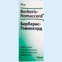 | Способ применения. | Препарат Берберис-Гомаккорд назначают внутрь по 10 капель (растворенных в 30 мл воды) 3 раза в день за 30 минут до или через 1 час после еды. При острых симптомах принимать через каждые 15 минут по 10 капель в течение 2-х часов. Продолжительность курса лечения определяется врачом. |
