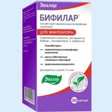| Показания препарата. | Бифилар является источником пробиотических микроорганизмов. Способствует восстановлению микрофлоры кишечника и снижению риска развития дисбактериоза, повышению местного иммунитета, улучшению пищеварения. |