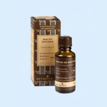 | Описание. | Латинское название Prunus persica kernel oil. Упругость и тонус (содержит омега 9). Получают из косточек плодов персикового дерева, родиной которого считается Китай. Широко распространено в странах с теплым умеренным климатом. В состав популярного косметического продукта входят витамины А, Р, Е, С, группы В, каротиноиды, токоферолы, фосфолипиды, калий, кальций, фосфор, железо, олеиновая, линолевая, пальмитиновая кислоты. |