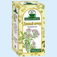 | Способ применения. | 1 фильтр- пакет залить 200 мл (1 стакан) кипятка, дать настояться 10 – 15 минут. Пить 1?2 – 1 стакана перед сном. Продолжительность приема - 30 дней. Перед применением рекомендуется проконсультироваться с врачом. |