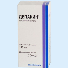 Получить консультацию по данному препарату| Состав и форма выпуска. | Состав: Сироп Депакин (Depakine) содержит в качестве активного вещества вальпроат натрия, а также следующие вспомогательные компоненты: метилпарагидроксибензоат, сахароза, глицерол, концентрированная соляная кислота или концентрированный раствор натрия гидроксида, пропилпарагидроксибензоат, сорбитол 70%, ароматизатор искусственный вишневый, вода очищенная. Форма выпуска: Лекарство Депакин выпускают в виде сиропа (в комплекте двусторонняя дозировочная ложка). |