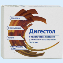 Получить консультацию по данному препарату| Фармакологическое действие. | Биологическая повязка Дигестол, представляющая собой прямоугольную пластину, имеет губчатую структуру. Уникальное изготовление методом сублимации определенного количества раствора природного коллагена и ферментов дигестазы оказывает прямое воздействие на бактерии. Инновационные стерильные повязки имеют способность саморассасывания при попадании в рану, впитывая воспалительные процессы, трансформируются в гель, впоследствии чего, полностью заполняют рану, способствуя скорейшему заживлению и оказывая противовоспалительное действие. Особенности состава: Состав средства включает в себя натуральный трехспиральный коллаген и фермент дигестаза (коллагеназа из гепатопанкреаса камчатского краба). Коллаген отвечает за поддержание влажной среды в ране, способствует выработке нового коллагена, стимулирует регенеративные процессы, не допускает инфицирование раны. Дигестаза расщепляет патологически измененный коллаген, лизирует (разрушает) некротические массы, разрушает оболочку бактерий. В ране Дигестол трансформируется в гель и постепенно лизируется, освобождая тем самым дигестазу, которая постепенно позволяет очистить рану. |