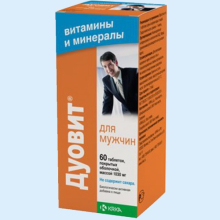 | Фармакологическое действие. | Сбалансированный комплекс Дуовит для мужчин содержит витамины и минералы, содействующие защите клеток организма от вредного воздействия внешней среды и способствующие снижению риска сердечно-сосудистых заболеваний. Фармакологическое действие - восполняющее дефицит витаминов и минеральных веществ. Не содержит глютен. Не содержит сахара. Биологически активная добавка к пище. Не является лекарственным средством. |