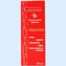 Получить консультацию по данному препарату| Состав и форма выпуска. | Состав: коллаген, димексид, аллантоин, эмоксипин. Вспомогательные вещества: вода очищенная, натрия тетраборат, натрия фосфат, фенонип. Коллаген - строительный материал и активный участник процесса заживления. Эмоксипин - антиоксидант, блокирует негативное повреждающее действие свободных радикалов, снижает перекисное окисление липидов, за счет этого блокирует патологический процесс и ускоряет заживление. Аллантоин - способствует очищению раны и удалению мертвых клеток, смягчает роговой слой и стимулирует регенерацию, ускоряет заживление ран, успокаивает раздраженную кожу. Димексид (ДМСО, диметилсульфоксид) - обладает способностью проникать через биологические мембраны, в том числе через кожные барьеры, усиливает проникновение через кожу лекарственных веществ. Обладает противовоспалительным действием, в дерматологии используется в лечении склеродермии, фурункулеза, рожистого воспаления, акне и др. |