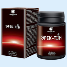 | Описание. | Преимущества препарата ЭРЕК-ТОН: натуральный комплексный состав обеспечивает более широкое действие меньше побочных эффектов, чем у синтетических аналогов, которые имеют единовременный эффект и массу противопоказаний (сердечная недостаточность, стенокардия, ишемическая болезнь сердца, инфаркт, инсульт, тромбоз артерий), вызывают тревожно-депрессивные нарушения обладает пролонгированным действием не содержит женьшеня, который в больших дозах (в других препаратах) обладает антиандрогенным действием, ведя к фармакологической кастрации. |