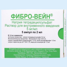 | Состав и форма выпуска. | Форма выпуска: Водный раствор для инъекций. Состав: 1 мл водного раствора содержит натрия тетрадецилсульфата 0,2 мг. Упаковка: 10 флаконов по 5 мл. |