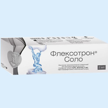 | Фармакологическое действие. | ФЛЕКСОТРОН Соло - протез синовиальной жидкости, стерильный, прозрачный вязкоэластичный гель, содержащий гиалуронат натрия, получаемый методом бактериальной ферментации, в фосфатном буфере. Имплантат не содержит лекарственного средства для медицинского применения, материалов животного и (или) человеческого происхождения. |