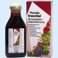| Фармакологическое действие. | Флорадикс Айронвиталь – поставщик живого железа для людей с повышенным риском к аллергическим реакциям. Если иммунная система ослаблена, то пациентам рекомендуется прием витаминизированного комплекса с железом, не содержащего дрожжей, поскольку последние создают дополнительную нагрузку на иммунную систему. По мнению врачей-натуропатов, ослабленная в некоторых случаях иммунная система не должна подвергаться дополнительному напряжению, поэтому создатели формулы «Живого железа» разработали специальный продукт – Флорадикс Айронавиталь, в рецептуре которого учтены очень важные аспекты: Отсутствуют компоненты, которые обладают «потенциальными качествами аллергена», то есть, формула витаминизированного комплекса не включает в себя глютена (белка, содержащегося в клейковине злаковых культур) Флорадикс Айронвиталь не содержит дрожжей, которые также обладают, для некоторых людей, определенным потенциалом аллергена. Поэтому Флорадикс Айронавиталь имеет смысл принимать тем, кто склонен к проявлению аллергических реакций и тем, кто старается употреблять в пищу бездрожжевой хлеб или хлеб, в рецептуре которого указано: «без глютена». В рецептуру натурального тоника добавлены экстракты цветков каркадэ и ромашки, не только придающие новый оттенок вкусу, но и помогающие усваивать глюконат двухвалентного железа. При этом самого железа в тонике содержится несколько больше. Обеспечивает адекватный уровень потребления железа на 75% (10,5 мг). Это связано с тем, что пивные дрожжи улучшают абсорбцию железа через слизистые оболочки кишечника, а без этого компонента процент усваиваемого железа снижается. Поэтому, чтобы гарантировать точную суточную дозу этого элемента, его содержание в тонике было увеличено. Растительные экстракты (морковь, шпинат, фенхель) поддерживают пищеварение и поставляют организму различные жизненно необходимые микроэлементы. Витамин С и концентраты фруктовых соков улучшают абсорбцию и усвоение железа организмом. Кроме того, витамин С – самый известный витамин, обладающий антиоксидантными свойствами, он поддерживает здоровье кровеносных сосудов, зубов и кожи. Очень важно, что витамин С препятствует превращению двухвалентного железа в трехвалентное. Витамин В6 необходим для здоровой кожи, нервов и мышц. Он участвует в продукции антител и гормонов. Витамин В1 так же как и витамин В2 высвобождает содержащуюся в продуктах энергию. Витамин В2 способствует восстановлению тканей организма, необходим для здоровья волос, ногтей и глаз. Витамин В1 поддерживает нервную систему и функции органов пищеварения. Витамин В12жизненно необходим для продукции эритроцитов и поддержания здоровья нервной системы. |