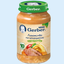 | Показания препарата. | Gerber Лакомство по-итальянски для питания детей старше 10 месяцев. |