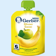 | Показания препарата. | Gerber (Гербер) Фруктовое пюре Яблоко и банан для питания детей старше 6 месяцев. |