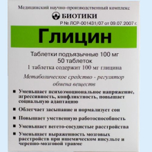 ГЛИЦИН 100МГ. №50 ТАБ. ПОДЪЯЗЫЧ. /БИОТИКИ/ (БИОТИКИ, РОССИЯ)