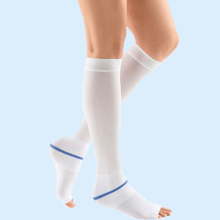 | Описание. | Госпитальные послеоперационные гольфы mediven struva 23 для компрессионного лечения после операций на венах нижних конечностей и профилактики тромбоэмболических осложнений. Трикотаж mediven struva 23 создает давление 23 мм рт. ст. на уровне лодыжек и предназначен для компрессионного лечения после флебосклерозирования, термической абляции и оперативных вмешательств на венах нижних конечностей. Их также применяют для профилактики венозных тромбозов и венозных тромоэмболических осложнений (ВТЭО) в условиях стационара у пациентов с умеренной и высокой степенью ВТЭО. Технология two-way-stretch обеспечивает высокую растяжимость трикотажа в двух направлениях и облегчает процесс надевания. Пористая вязка отвечает за правильную терморегуляцию и водный баланс кожи. Благодаря резинке на силиконовой основе изделие надежно фиксируется на ноге. Индикатор правильности надевания и подбора размера на резинке помогает предотвратить передавливание конечности и нарушение венозного оттока. На резинке изделия располагается маркировка уровня компрессии, что позволяет предотвратить ошибки в подборе трикотажа. |
