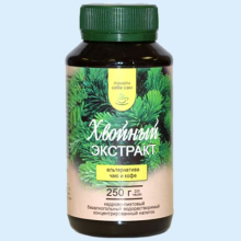 | Фармакологическое действие. | Хвойный экстракт изготавливается по старинному рецепту, вдалеке от городов в самом сердце Сибири, путем экстрагирования из молодых побегов сибирских пихты и кедра. Способ применения: растворить хвойный экстракт в стакане горячей или холодной воды 1/8 чайной ложки детям; 1/4 чайной ложки взрослым. Кедрово-пихтовый безалкогольный концентрированный напиток укрепляет иммунитет, способствует выведению из организма токсинов, шлаков, ядов. Дезинфицирует ЖКТ. Снижает риск ОРВИ и ЛОР заболеваний. Снимает изжогу и похмелье. Восстанавливает кислотно-щелочной и витаминный баланс. Способствует сращиванию костей, здоровью кожного покрова. Мед/подсластитель, лимон, специи, молоко - по вкусу. |