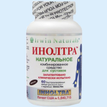 | Способ применения. | Взрослым с массой тела менее 68 кг назначают по 1 капс. 3 раза/сут, 68-90 кг - по 2 капс. 3 раза/сут, более 90 кг - по 3 капс. 3 раза/сут, за 30 мин до приема пищи. Эффект Инолтры усиливается с течением времени, поэтому рекомендуемый курс составляет не менее 3 мес. Если в течение первых двух недель боли не ослабевают, то следует увеличить каждую разовую дозу на 1 капс. |