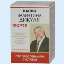 | Показания препарата. | Капли Валентина Дикуля Форте применяются для профилактики развития радикулита, остеохондроза, артритов и артрозов. |