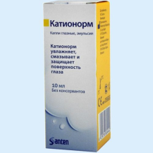 | Фармакологическое действие. | Катионорм представляет собой глазную гипотоническую эмульсию (рн 5.0-7.5) в виде жидкости молочного цвета, не содержащую консервантов. Капли глазные Катионорм рекомендуются для устранения и облегчения симптомов «синдрома сухого глаза», проявляющихся в виде покалывания, жжения, зуда, чувстве инородного тела (ощущение песка или пыли в глазах). Данные симптомы могут быть связаны с внешними факторами (кондиционирование воздуха, ветер, загрязнение, дым, пыль, путешествие на самолете и т.д.) или интенсивной зрительной нагрузкой (например, длительной работой за компьютером). Катионорм увлажняет, смазывает и защищает поверхность глаза. Катионорм не влияет на качество контактных линз. |
