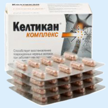 Получить консультацию по данному препарату| Фармакологическое действие. | Биологически активная добавка к пище, не является лекарством. Келтикан® комплекс способствует восстановлению поврежденных нервных волокон при заболеваниях позвоночника и периферических нервов. В нашем организме имеется большое количество нервных волокон, составляющих так называемую периферическую нервную систему. При поражении этих нервов, например, в случае сдавления, ущемления или при длительно протекающих в течение многих лет нарушениях обмена веществ, таких как сахарный диабет, возможно развитие неприятных и болезненных ощущений. Поражение периферической нервной системы может возникать при различных состояниях и заболеваниях, сопровождающихся неприятными и болезненными ощущениями (например, заболевания позвоночника, невралгии). Организм человека способен самостоятельно за счет резервных возможностей восстанавливать пораженные нервные волокна. Конечно, процессы восстановления требуют достаточного количества времени. Однако в этом случае поступление извне определенных структурных элементов, необходимых для восстановления нервных волокон, может оказать значительную помощь. Келтикан® комплекс содержит биогенный элемент уридинмонофосфат, а также витамин В12 и фолиевую кислоту, которые стимулируют собственные восстановительные процессы в организме. Уридинмонофосфат имеет особое значение для ускорения восстановления поврежденных нервов, а фолиевая кислота и витамин В12 - для поддержания нейронного метаболизма. Клинически доказано и документально подтверждено, что при поражениях периферических нервов повышается потребность в пиримидиновых нуклеотидах, таких как уридинмонофосфат. Поэтому его поступление в организм извне имеет важнейшее значение в ходе процессов восстановления и регенерации нервов. В результате его метаболизма обеспечивается восстановление важных компонентов клеточных мембран нейронов, а также поступление достаточного количества ферментов к поврежденным нейронам. Фолиевая кислота и витамин В12 имеют важное значение в поддержании нейронного метаболизма (биосинтезе белка, процессах миелинизации), а также в профилактике или снижении выраженности микроангиопатий. БАД к пище Келтикан® комплекс - это надежный и качественный продукт, содержащий важные компоненты, необходимые для восстановления поврежденных нервных тканей. Благодаря этому Келтикан® комплекс способствует более быстрому восстановлению хорошего самочувствия и работоспособности. |