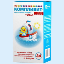 | Фармакологическое действие. | Компливит Мультивитамины + Йод - комбинированный препарат, содержащий комплекс витаминов и минералов, являющихся важными факторами метаболических болезней. Витаминно-минеральный комплекс разработан для восполнения физиологической потребности в витаминах и минеральных веществах и сбалансирован с учетом суточной потребности. Совместимость компонентов в 1 таблетке обеспечена специальной для витаминных препаратов технологией производства. |
