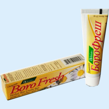 Получить консультацию по данному препарату| Описание. | КРЕМ БОРОФРЕШ обычно используется для наискорейшего заживления ран, мелких порезов, фурункулов, ожогов, сыпи, раздражения кожи, а также при лечении трещин между пальцами ног, при появлении герпеса на губах. Крем эффективен в качестве солнечного фильтра, защищает от солнечных ожогов, а также поможет избавиться от прыщей и пятен, остающихся после них. БОРОФРЕШ предотвратит появление пигментных пятен, поможет при появлении трещин на руках, губах и ступнях, помимо этого иногда применяется при появлении трещинах на сосках. Данный крем хорошо смягчает и успокаивает сухую кожу, придает ей блеск. БОРОФРЕШ также будет эффективен при небольших раздражениях на коже ступней, рук, ушей и тела. Например, он применяется при раздражение кожи от контакта с водой и стиральным порошком Благодаря антисептическим свойствам может использоваться как крем после бритья. Данный крем отлично подходит для сухой и нормальной или комбинированной кожи. Крем идеален для ежедневного использования. Крем БОРОФРЕШ защитит кожу от вредоносного воздействия внешней среды, предотвратит тусклость и вялость кожи, смягчит её, восстановит ее упругость и молодость. |