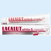 | Фармакологическое действие. | Зубная паста Lacalut White & Repair для эффективного отбеливания зубов и безопасного восстановления эмали. Гидроксиапатит встраивается в поверхностные слои эмали, обеспечивая быструю репарацию и реминерализацию. Восстанавливает природную белизну зубов. Снижает повышенную чувствительность. |