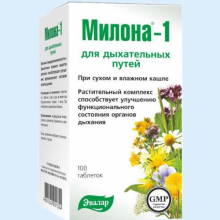 | Фармакологическое действие. | Милона - 1 повышает сопротивляемость организма в противоборстве с вирусными и бактериальными инфекциями дыхательных путей нормализует обменные процессы в легких снимает воспалительные процессы облегчает боли и снимает спазмы бронхиальной мускулатуры ускоряет выздоровление естественным путем при простудных заболеваниях дыхательных путей помогает преодолеть перерастание острой формы в хроническую между курсами основного лечения помогает предупредить рецидивы при хронической форме заболевания снижает тягу к курению и помогает избавиться от последствий влияния никотина на организм. |