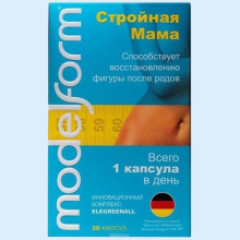 | Показания препарата. | Применение «МОДЕЛЬФОРМ (MODELFORM) СТРОЙНАЯ МАМА» способствует: снижению массы тела регулированию аппетита регулированию усвоения жиров и углеводов улучшению функционального состояния желудочно-кишечного тракта улучшению общего самочувствия защите и улучшению функционального состояния печени улучшению и нормализации эндокринной системы нормализации женских циклических процессов улучшению сексуальной функции улучшению и нормализации эмоционального и психологического состояния улучшению внешнего вида и физического состояния. |