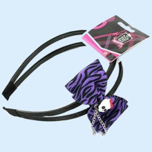 Получить консультацию по данному препарату| Описание. | Модные украшения преобразят любой наряд, сделав его страшно красивым. Ободок для волос Клаудин Вульф ТМ Monster High декорирован фиолетовым бантом, цепочками и черепом. |