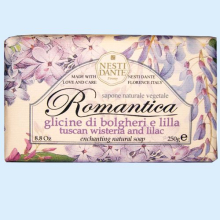 Получить консультацию по данному препарату| Описание. | Натуральное мыло премиум-класса Nesti Dante Romantica. Тосканская глициния и сирень - два букета, бережно отобранные самые романтичные и эмоциональные ароматы, самые незабываемые моменты нашей жизни в магии цветов провинции Тоскана. Легкий и прозрачный аромат глицинии сочетается с легким и сладковатым ароматом сирени, нежный цветочный запах напоминает солнечный весенний день. Изысканная флорентийская бумага, в которую завернуто мыло, расписана акварелью, на каждом кусочке мыла выгравирована надпись With Love And Care (С любовю и заботой). |