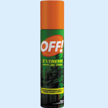 Получить консультацию по данному препарату| Описание. | ОФФ ЭКСТРИМ АЭРОЗОЛЬ ОТ КЛЕЩЕЙ/КОМАРОВ/НАСЕКОМЫХ - высокоэффективная формула репеллентного аэрозоля гарантирует долговременную защиту от укусов комаров, клещей, мокрецов, слепней, москитов, мошек, блох и других кровососущих насекомых. При нанесении на кожу защищает от комаров до 8 часов, от клещей до 2 часов. При нанесении на одежду защищает от комаров до 30 суток, от клещей - на 5 суток. Не оставляет ощущения жирности на коже и пятен на одежде. Можно обрабатыватать открытые части тела, одежду, занавеси и сетки на окнах, пологи. Имеет приятный аромат. |