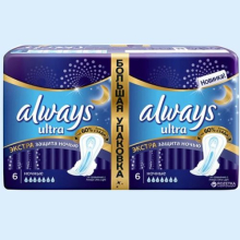 Получить консультацию по данному препарату| Описание. | Прокладки Always Ultra Night обеспечат тебе до 100% защиты от протеканий даже ночью! Благодаря новому волнистому верхнему слою с уникальной 3D текстурой прокладки Always Ultra на 50% меньше соприкасаются с кожей и почти не прилипают. Проверено дерматологами - приятно для кожи. |