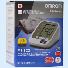 Получить консультацию по данному препарату| Состав и форма выпуска. | Комплектация: Электронный блок Omron M3 Eco (HEM 7131-ARU) Компрессионная манжета Omron CM (22 - 32 см.) Руководство по эксплуатации Чехол для хранения прибора Комплект элементов питания Адаптер переменного тока Omron S Гарантийный талон Журнал для записи артериального давления |