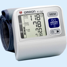 Получить консультацию по данному препарату| Описание. | Компактный тонометр Omron R3 Opti выполнен в виде браслета. При надевании манжеты на запястье он измеряет артериальное давление и частоту сердечных сокращений-. Встроенный компрессор сам накачивает воздух и удерживает манжету в наполненном состоянии до полного измерения, которое длится 15-20 секунд. Прибор может использоваться всеми членами семьи, но память в микропроцессоре рассчитана только на одного пользователя. В нее вносятся дата замера и его результат. При необходимости можно вывести данные за любой день на экран. Для активации этой функции необходимо перед первым использованием установить актуальные дату и время. |