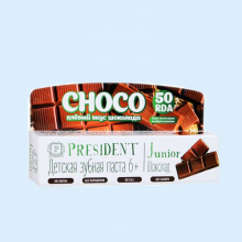 Получить консультацию по данному препарату| Описание. | Детская зубная паста President Junior 6+ Choco шоколад 50мл. Детская зубная паста President Junior Choco от 6 лет обеспечивает деликатный и эффективный уход за молочными и постоянными зубами.  Стимулирует процесс реминерализации, предотвращает разрушение эмали и развитие кариеса.  Оригинальный вкус и аромат   шоколада превращает чистку зубов в удовольствие! Применение: после каждого приема пищи, не менее двух раз в день.  Рекомендуется для профилактики кариеса и детского стоматита. Срок годности 5 лет.