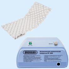 Получить консультацию по данному препарату| Показания препарата. | Противопролежневые системы предназначены для профилактики и лечения пролежней у пациентов с повреждениями и заболеваниями опорно-двигательного аппарата и центральной нервной системы, тяжелыми соматическими заболеваниями, сопровождающимися длительным вынужденным неподвижным положением тела. Профилактический и лечебный эффект противопролежневой системы достигается за счет попеременного нагнетания воздуха в две не связанные друг с другом области матраца, каждая из которых, состоит из отдельных камер. Давление в ячейках матраца меняется каждые 12 минут.Применение противопролежневой системы BRONIGEN позволяет поддерживать жизнеспособность мягких тканей тела пациента. Ячейки матраца попеременно наполняемые воздухом, оказывают массажное воздействие на кожу, подкожную клетчатку и мышцы. Постоянный массаж обеспечивает нормальное кровоснабжение, питание и дыхание тканей. |