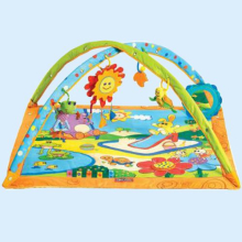 | Описание. | Яркий коврик с четырьмя игрушками, безопасным зеркалом и забавным солнышком с тремя мелодиями. Музыкальное солнышко реагирует на прикосновения ребёнка. Традиционная конструкция - мягкий квадратный коврик, перекрещивающиеся дуги с подвесными игрушками. Игрушки: Музыкальное солнышко с фактурными элементами (лучики, ленточки) - при ударе по нему ручкой или ножкой звучит одна из трех забавных мелодий Безопасное зеркало Листочки-прорезыватели Лягушонок на резиночке Черепашка-погремушка На поверхности коврика, кроме ярких картинок, есть и сюрпризы - например, пищащий цветочек. |