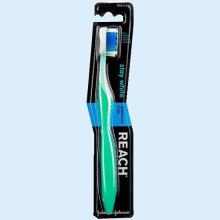 | Описание. | Зубная щетка Reach с разноуровневой щетиной средней жесткости и рельефным скребком для отбеливания зубов обеспечивает эффективную чистку межзубных пространств и дальних зубов. Скребок находится на обратной стороне головной части зубной щетки. |