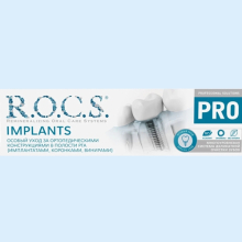 | Показания препарата. | Зубная паста R.O.C.S. PRO Implants уменьшает риск возникновения заболеваний в полости рта, которые могут быть связаны с наличием ортопедических конструкций (имплантаты, коронки, виниры). Позволяет пролонгировать период качественной эксплуатации и сохранить их внешний вид. |