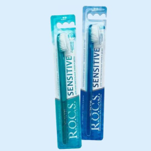 Получить консультацию по данному препарату| Описание. | Зубная щетка R.O.C.S. SENSITIVE для чувствительных зубов и десен проникает глубоко между зубами, позволяет чистить в труднодоступных местах, предотвращает заболевания десен, уменьшает воспаление и кровоточивость десен. Мягкая щетина с заостренными кончиками обеспечивает мягкую и деликатную чистку в самых трудно-доступных местах.  Ультратонкие заостренные щетинки аккуратно и нежно проникает между зубами и удаляют зубной налет не повреждая десны и зубные реставрации. |