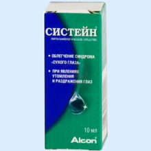 Получить консультацию по данному препарату| Состав и форма выпуска. | Форма выпуска: Систейн. Капли глазные. Упаковка: Во флаконе 15 мл. В пачке картонной 1 флакон. Состав: В растворе капель глазных содержится: Действующие вещества: Полиэтиленгликоль 0,4%. Пропиленгликоль 0,3%. Гидроксипропил-гуар 0,16%-0,19%. Кислота борная 0,7%. Калия хлорид 0,12%. Натрия хлорид 0,1%. Сорбитол 1,4%. 2-амино-2-метилпропанол 0,57%. Хлорид полидрония 0,001%. Кислота хлористоводородная и/или натрия гидроксид (для доведения рН). Вода очищенная (до объема 100%). |