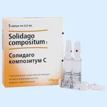 | Фармакологическое действие. | Солидаго композитум С оказывает антидизурическое действие. Обладает противовоспалительной, обезболивающей, диуретической, спазмолитической, гипотензивной, противомикробной, седативной и противосудорожной активностью. |