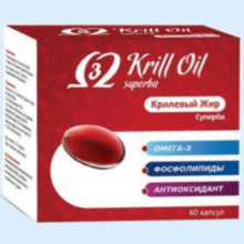 | Фармакологическое действие. | Суперба Крилевый жир - это жир из антарктического криля «Euphausia superba», уникальность которого состоит в том, что значительная часть содержащихся в нем Омега-3 кислот находится в фосфолипидной форме. Омега-3 фосфолипиды имеют лучшие свойства по сравнению с Омега-3 в форме триглицеридов (рыбий жир). Омега-3 в фосфолипидной форме способны растворятся в водной среде. Это способствует более эффективному усвоению крилевого жира организмом человека. Омега-3 жирные кислоты концентрируются, в основном, в тканях мозга, зрительном аппарате, включается в липидный слой клеточных мембран, регулируя их микровязкость, проницаемость, формируя соответствующее липидное окружение мембранных бликов и ферментов. В состав «Суперба Крилевый жир» в количестве 55 мкг входит природный антиоксидант астаксантин из группы каротиноидов, который по эффективности превосходит многие имеющиеся в природе антиоксиданты. Астаксантин имеет в структурной формуле два дополнительных атома кислорода на каждом из колец, по сравнению с бета - каротином, и эти дополнительные функциональные группы увеличивают его антиоксидантные свойства. |