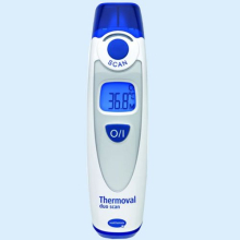 Получить консультацию по данному препарату| Описание. | Температура тела является важным показателем состояния здоровья каждого человека. Таким образом, каждая семья должна иметь надежный и точный термометр, который позволит пользователям легко и быстро выявить высокую температуру и оперативно на нее среагировать. Термометр Thermoval duo scan современный и быстрый способ для измерения температуры тела: два способа измерения: в ушном канале или на лбу (термометр автоматически распознает, какое измерение используется) запатентованный инфракрасный датчик нового поколения гарантирует очень высокую точность измерения температуры в ушном канале и на лбу быстрота измерения благодаря инфракрасной технологии: воспроизведение результата измерения всего в течении 3 секунд на лбу или одной секунды в ухе точность измерений проверены в клинической практике результат последнего измерения всегда сохраняется в памяти простота в использовании: всего две кнопки (ВКЛ/ВЫКЛ и SCAN) четкий звуковой и визуальный сигналы в начале и в конце измерений современный и эргономичный дизайн длительный срок службы батарей (от 1000 измерений). |
