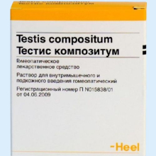 | Фармакологическое действие. | Тестис композитум оказывает стимулирующее функцию мужских половых желез, сосудорасширяющее, противовоспалительное, трофическое, противосудорожное действие. |