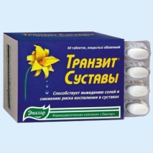 | Показания препарата. | Транзит суставы Эвалар рекомендуется к применению для выведения солей из суставов и позвоночника. |