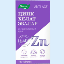 | Фармакологическое действие. | Цинк хелат Эвалар способствует: - Повышению сопротивляемости организма к инфекциям (укреплению иммунитета); - Предотвращению выпадения волос; - Синтезу собственного коллагена; - Антиоксидантной защите (Anti-Age эффекту); - Усилению выработки инсулина; - Синтезу тестостерона; - Позволяет регулировать деятельность сальных желез, справляться с жирным блеском кожи и покраснениями; - Участвует в процессе сперматогенеза. Преимущества Цинк хелат Эвалар: - Удобный прием - всего 1 таблетка в день; - Не вызывает побочных эффектов со стороны ЖКТ; - Экономичная упаковка; - Выгодная цена; - Сырье высокого качества; - Разрешен беременным и кормящим женщинам; - Произведен по международному стандарту качества GMP. |