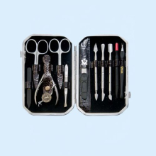 Получить консультацию по данному препарату| Описание. | Маникюрный набор 11 предметов (ножницы кутикульные, ножницы ногтевые, кусачки маникюрные, пилка алмазная, металлический двусторонний шабер 1, металлический двусторонний шабер 2, металлический двусторонний шабер 3, пластиковый шабер 1, пластиковый шабер 2, пинцет, триммер) чехол натуральная кожа. Цвет инструментов - матовое серебро. Оригинальная фирменная коробка +подарок |